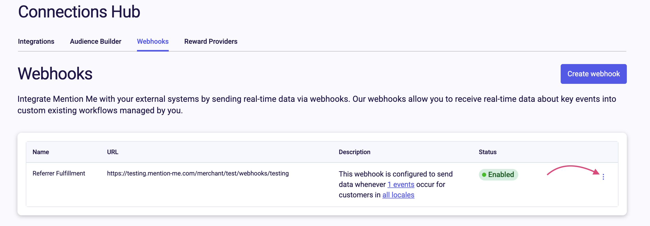 Contact your integration lead or raise a support ticket via the Admin Portal if you need help managing webhook connections.