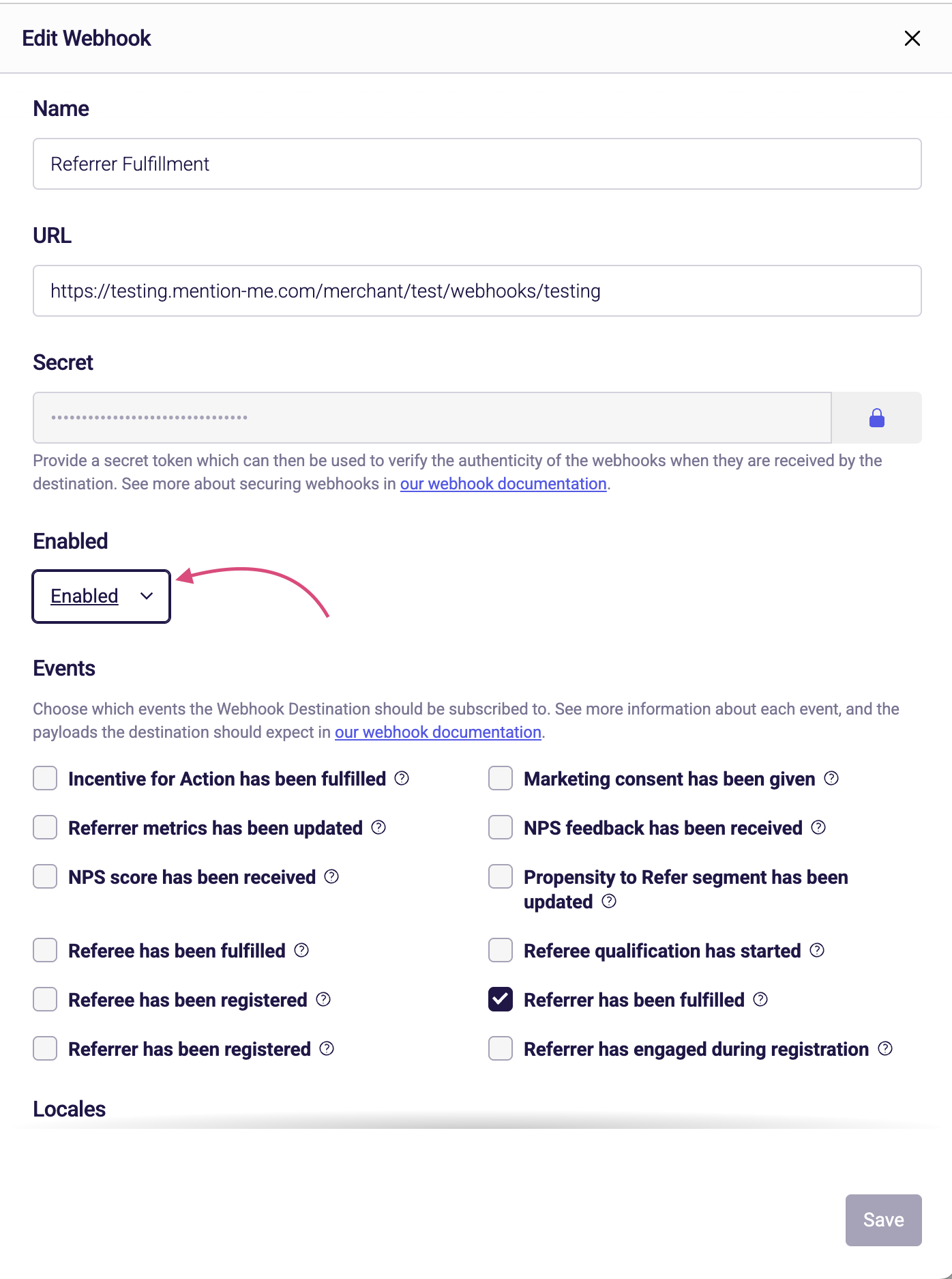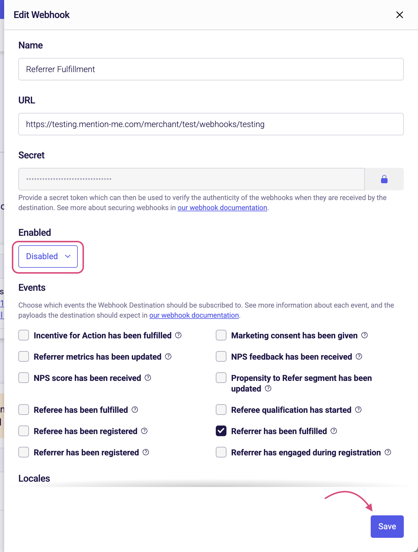 In the "Enabled" dropdown, set the value to Disabled, then click Save.